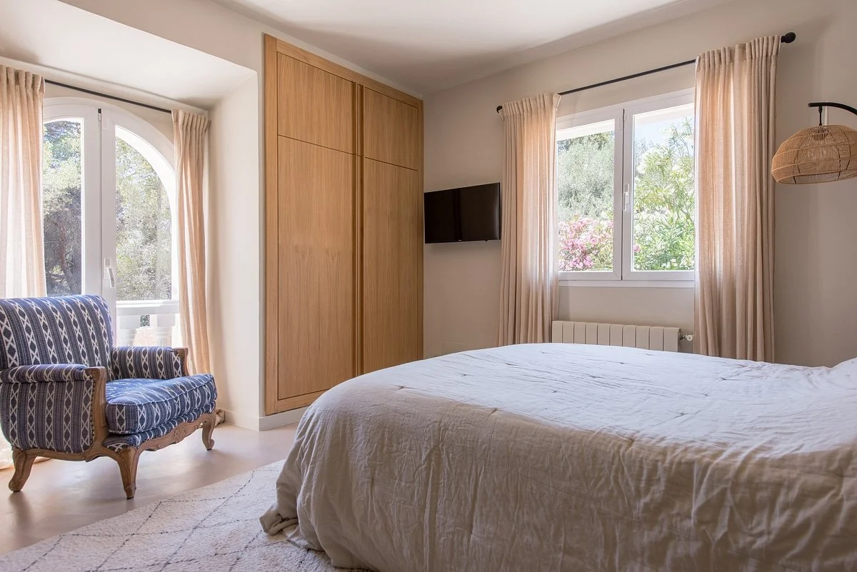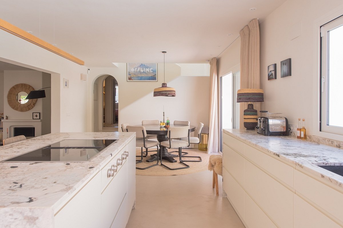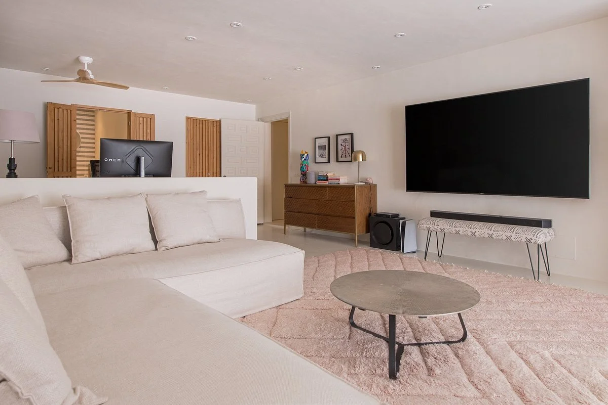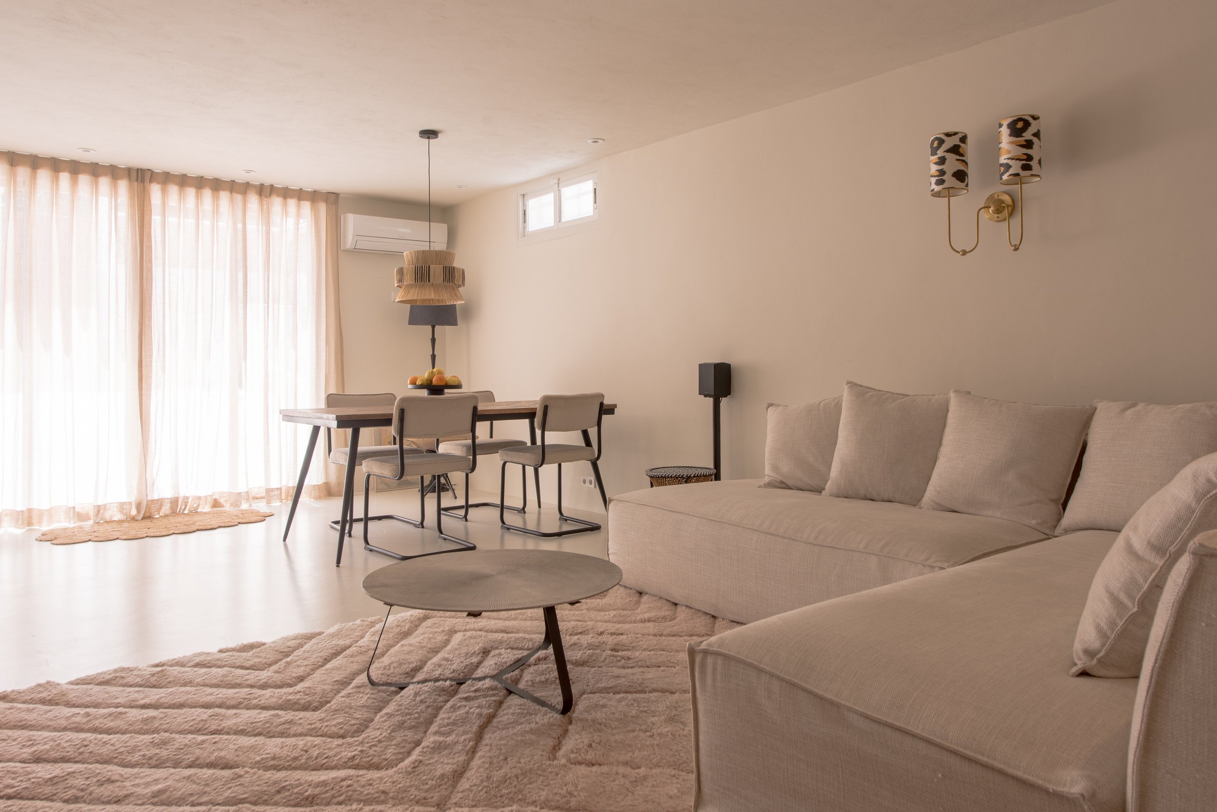 Villa del Alma is a newly renovated villa in one of Santa Eulalia’s most desirable neighbourhoods. Spread across three levels, the home blends relaxed luxury with warmth and character, offering space, privacy and thoughtful design. Just a five-minute walk from the village centre and close to beaches, restaurants and the sea.